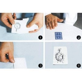 Una carta viene selezionata da uno spettatore da un mazzo normale, ed è posta a faccia in giù sul tavolo. Il mago poi introduce tre carte bianche, che sono liberamente mostrate essere vuote su entrambi i lati. Sulla carta al centro improvvisamente appare nel retro un disegno, e quando la carta viene girata a faccia è mostarta avere stampata la carta corrispondente a quella selezionata dagli spettatori. La carta appena stampata è inserita ancora una volta tra le due carte bianche, e ancora una volta, misteriosamente scompare, lasciando solo tre carte bianche.